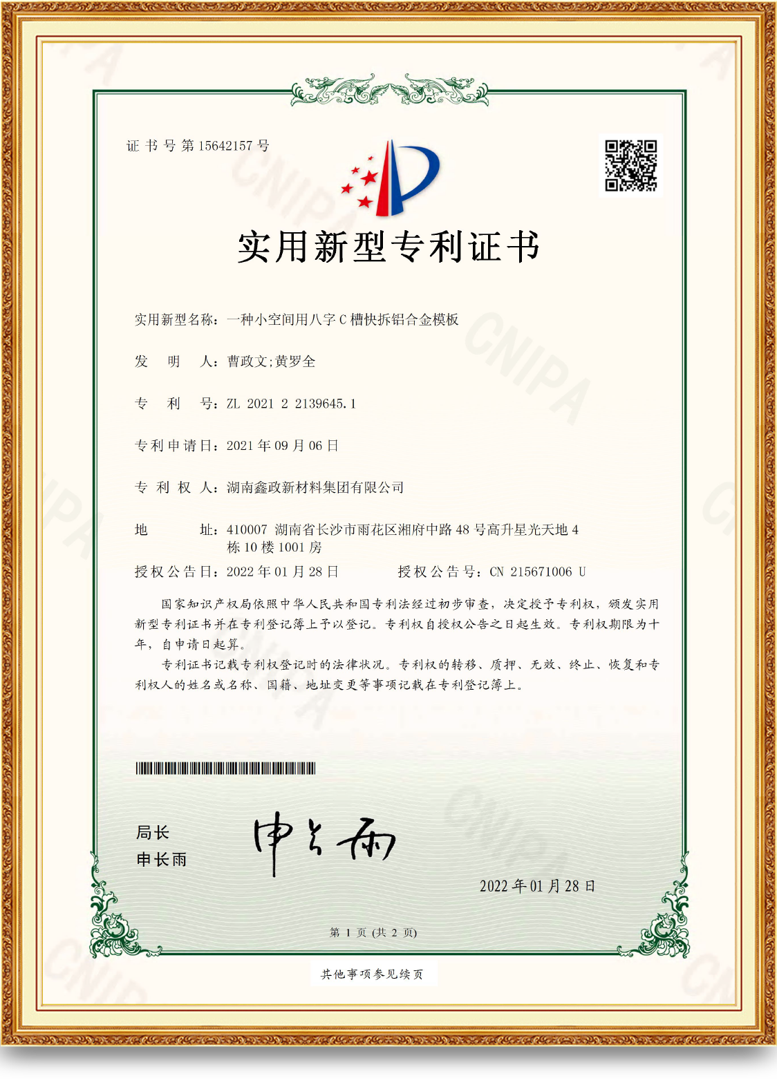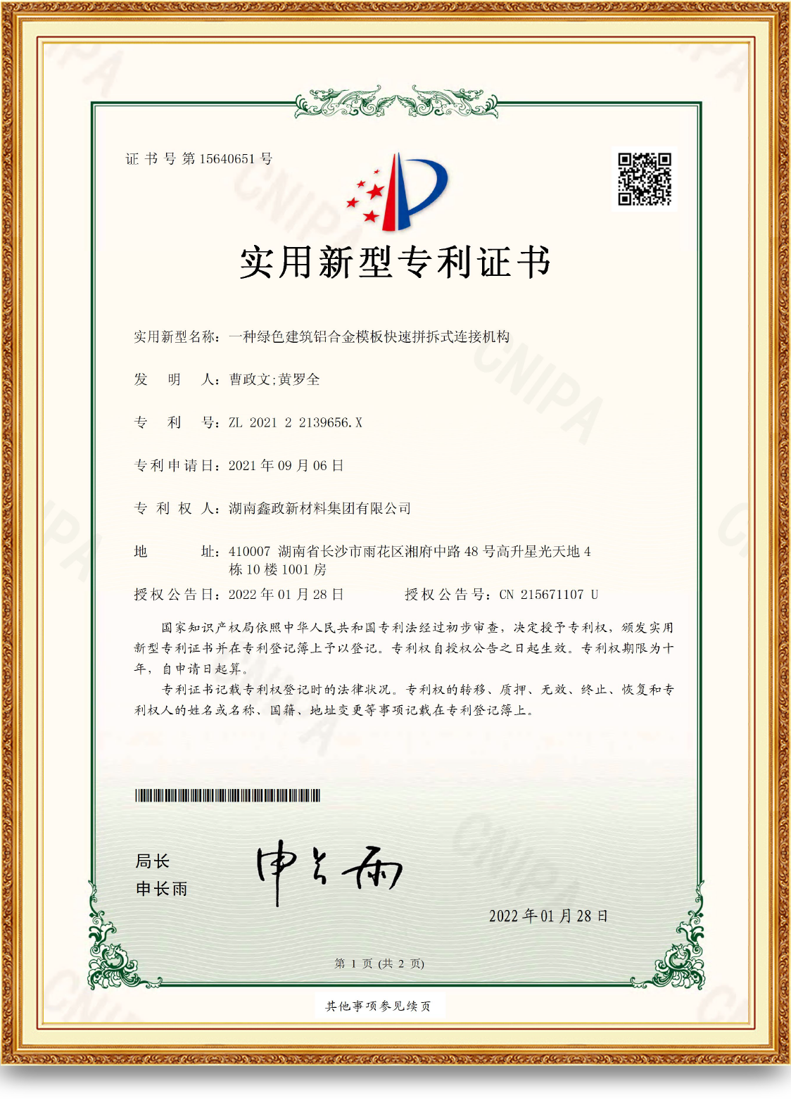 一种抗冲击建筑91香蕉视频在线看污专利证书
